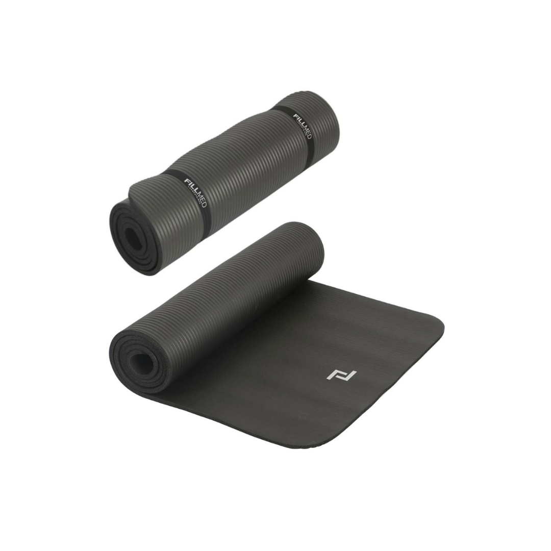 Svart ensidig yogamatta med bärrem från Laboratoires FILLMED. Med en tjocklek på 5mm erbjuder denna yogamatta en bekväm och stabil yta för din yoga-träning.